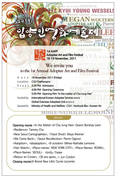 We invite you on 1st AAFF(Adoptee Art and Film Festival) !!!