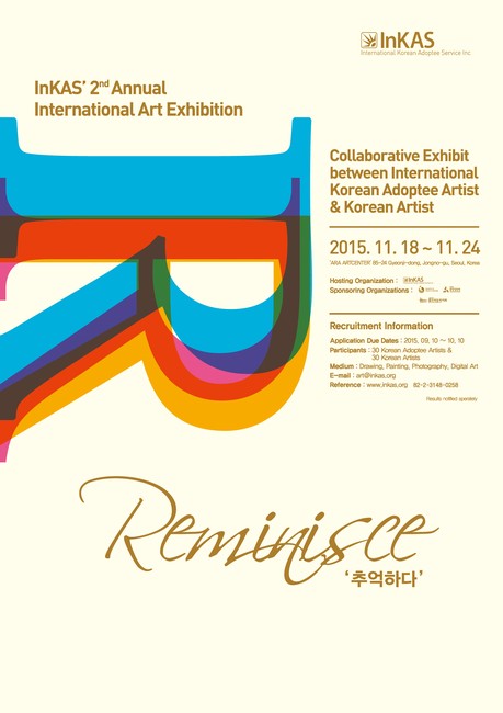 InKAS would like to cordially invite art pieces of Korean adoptee artists to InKAS' 2nd annual Korean adoptee and Korean artists art exhibition in Seoul, South Korea. One of InKAS' prioritized projects are art related events where adoptees are able to professionally connect with Korean's mainstream social groups. We believe that a strong identity search for adoptees are found not through learning the Korean language and culture but also through meaningful interactions obtained in the Korean adoptee artists & Korean artists’ collaborative art exhibition 2015.