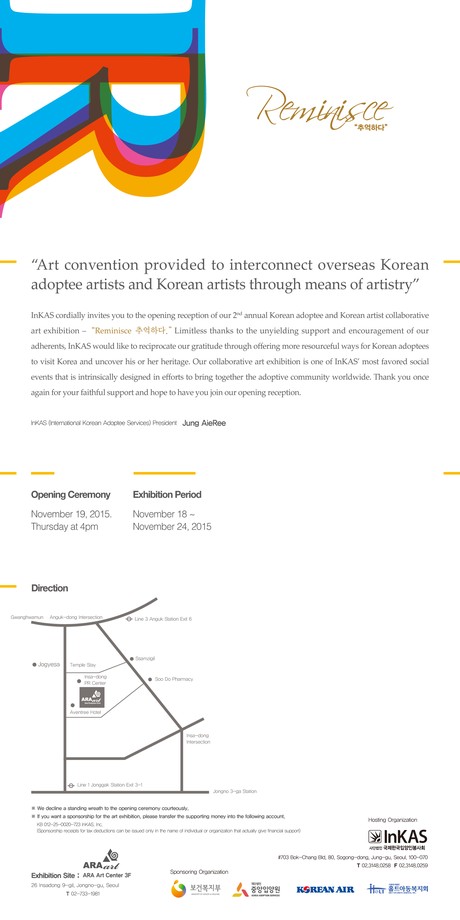 We would like to invite you TO the Art Exhibition "Reminisce" (추억하다).
