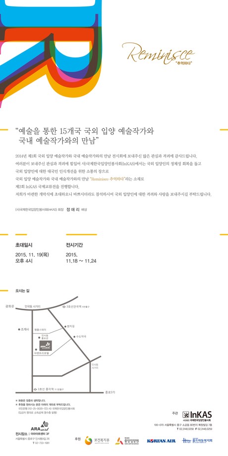 국외 입양예술작가와 국내 예술작가와의 만남 Reminisce(추억하다) 전시회를 진행합니다.